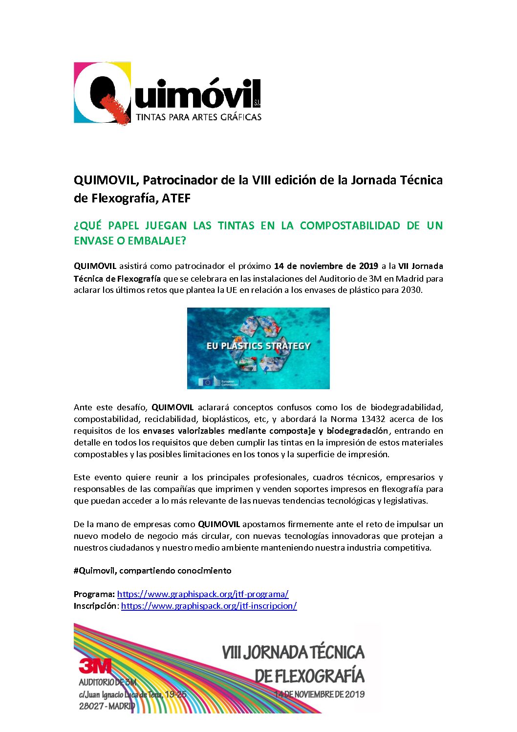 QUIMOVIL, PATROCINADOR DE LA JORNADA TÈCNICA DE FLEXOGRAFIA, ATEF