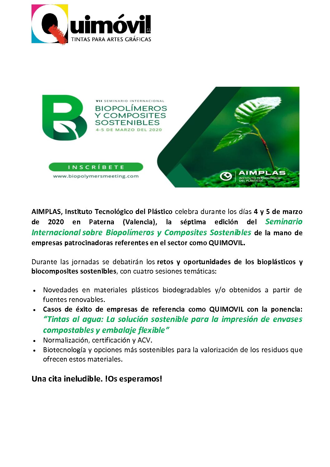 QUIMOVIL, empresa Patrocinadora del VII Seminario Internacional sobre Biopolímeros y Composites Sostenibles